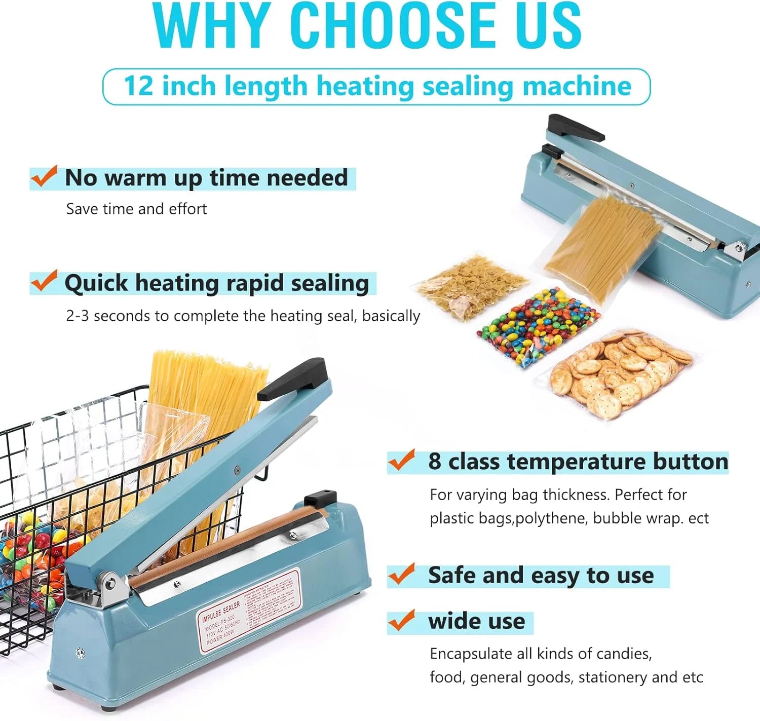 12-Inch Sealing Capacity – Perfect for medium to large bags and shrink wraps.
